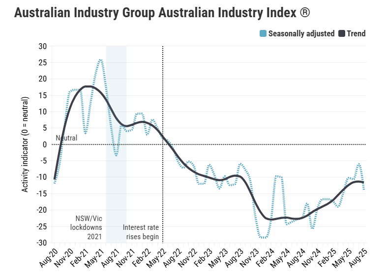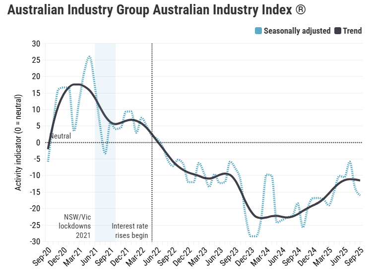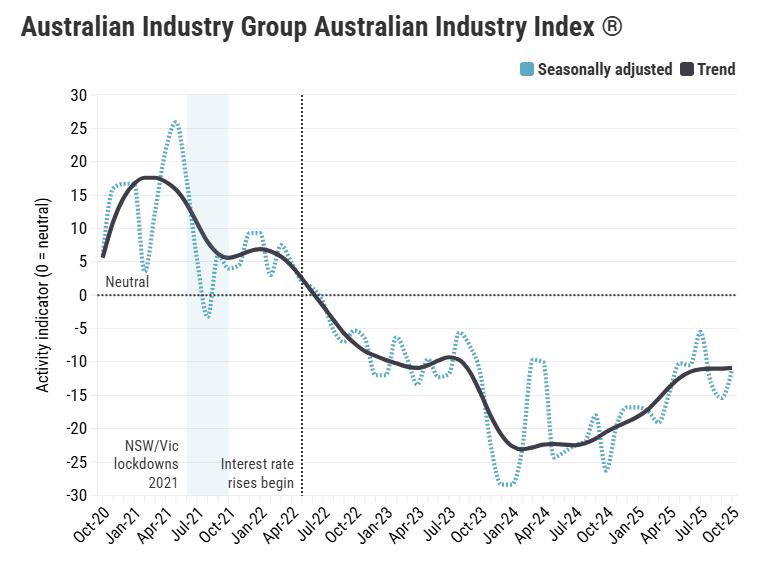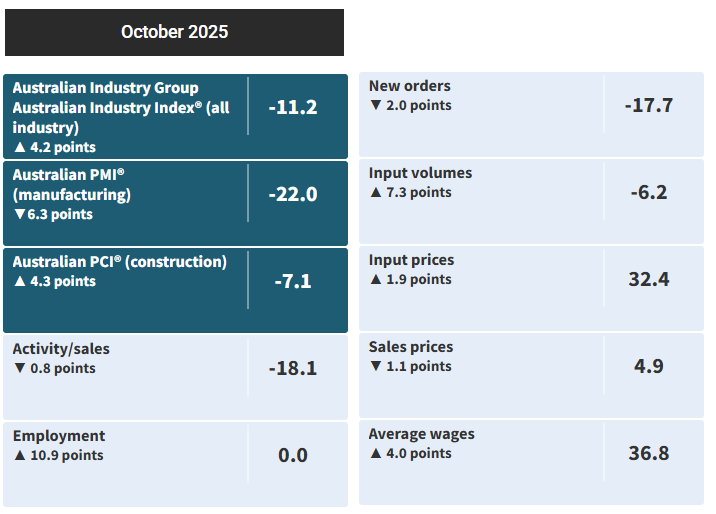 The Australian Industry Index® improved by 4.2 points to -11.2 seasonally adjusted in October.