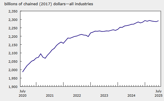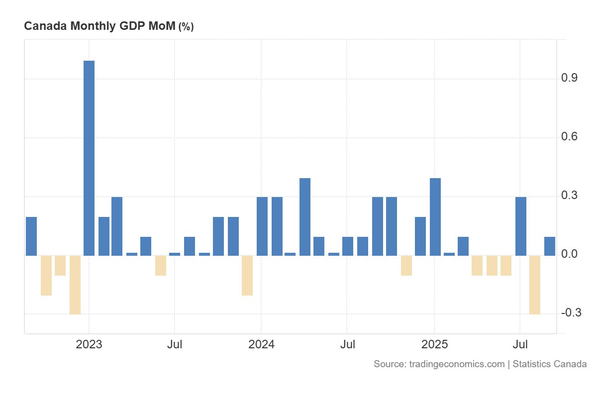 Canada’s real GDP rose +0.2% MoM in September 2025 (after -0.1% in August), marking a modest rebound led by goods-producing industries and a broad pickup in manufacturing.