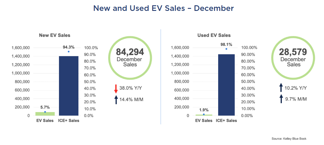 January marked a reset for the EV market, with new‑vehicle demand softening sharply and inventory building, while used EV sales strengthened and supply tightened further. Pricing edged lower across both segments, narrowing EV‑to‑ICE premiums.