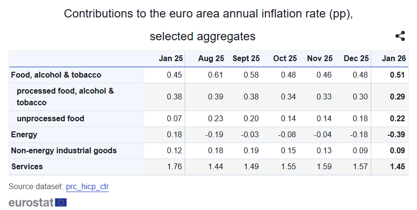 Services inflation edged up to 3.4% YoY (Jan: 3.2%) with a +0.8% MoM rise, while non-energy industrial goods increased to 0.7% YoY (Jan: 0.4%) and +0.7% MoM, highlighting firmer momentum across both services and goods components.
