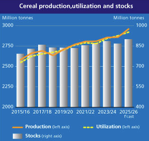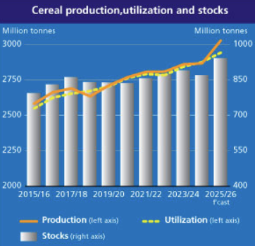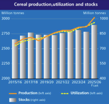Improved prospects for coarse grains put global cereal production in 2025 forecast at all-time high