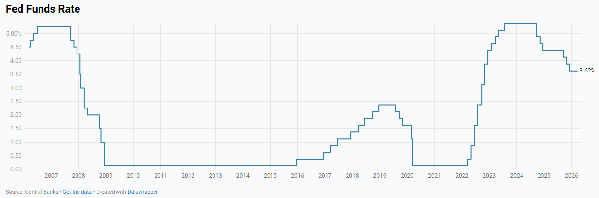 The Federal Reserve held the federal funds rate unchanged at 3.50%-3.75% after three consecutive cuts, reflecting a shift toward a wait-and-see policy stance as labor market conditions show early signs of stabilization and inflation remains somewhat elevated.