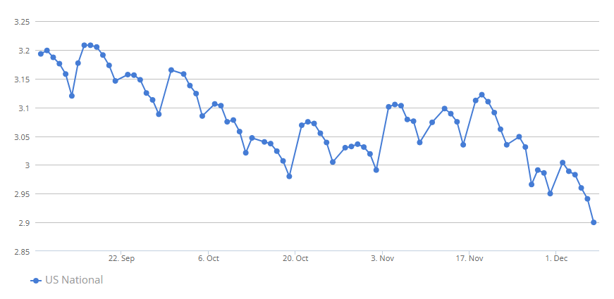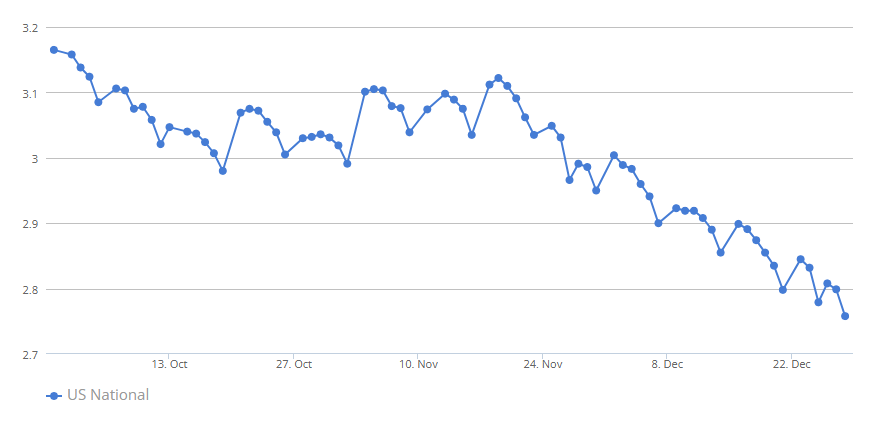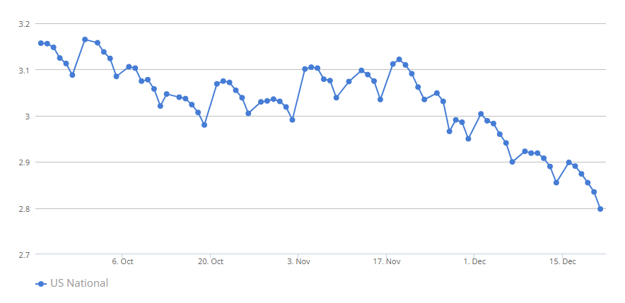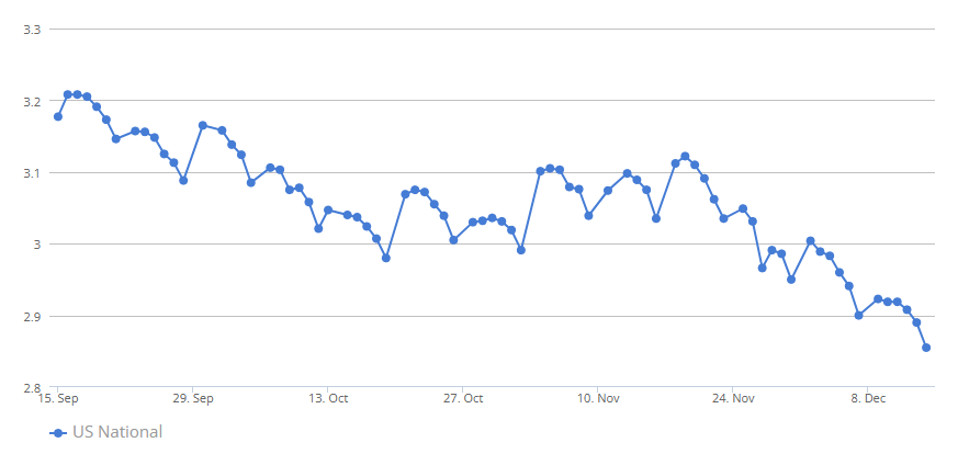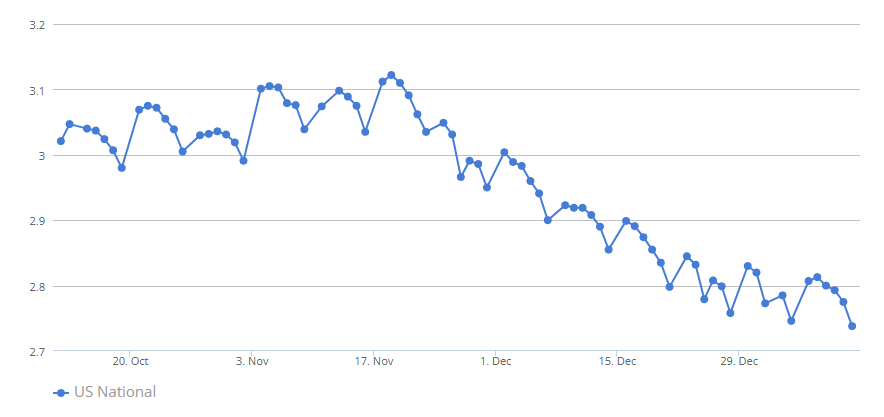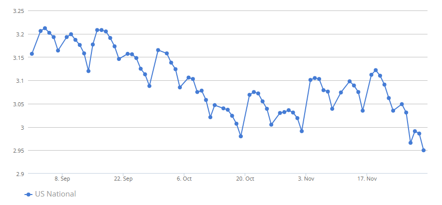 Versus one month ago, gasoline prices were +3.6c higher, but remained -23.9c lower YoY, indicating prices are still materially below last year despite recent gains.