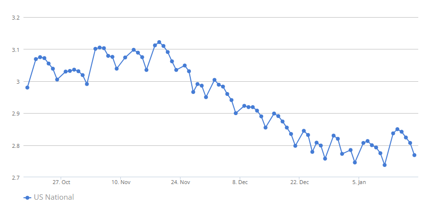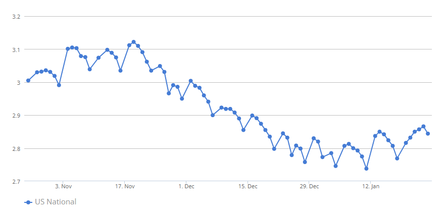 The U.S. average gasoline price rose to $2.84/gal (+7.5c WoW; +3.6c MoM; -23.9c YoY), extending its rebound as oil prices moved back above $60.