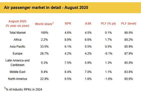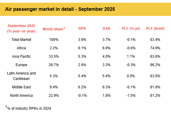The International Air Transport Association (IATA) released data for October 2025 global passenger demand with the following highlights: