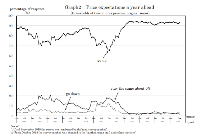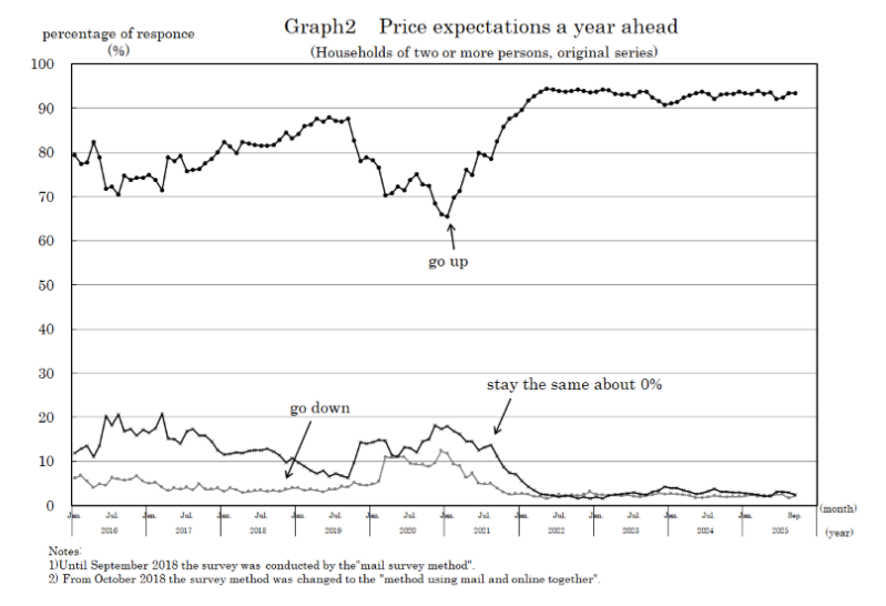 Inflation expectations eased slightly, with 92.6% of respondents expecting prices to rise (down -0.8 ppts MoM), while 3.2% expected stability (+0.8 ppts) and 2.2% expected prices to fall (-0.1 ppt).