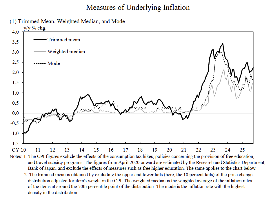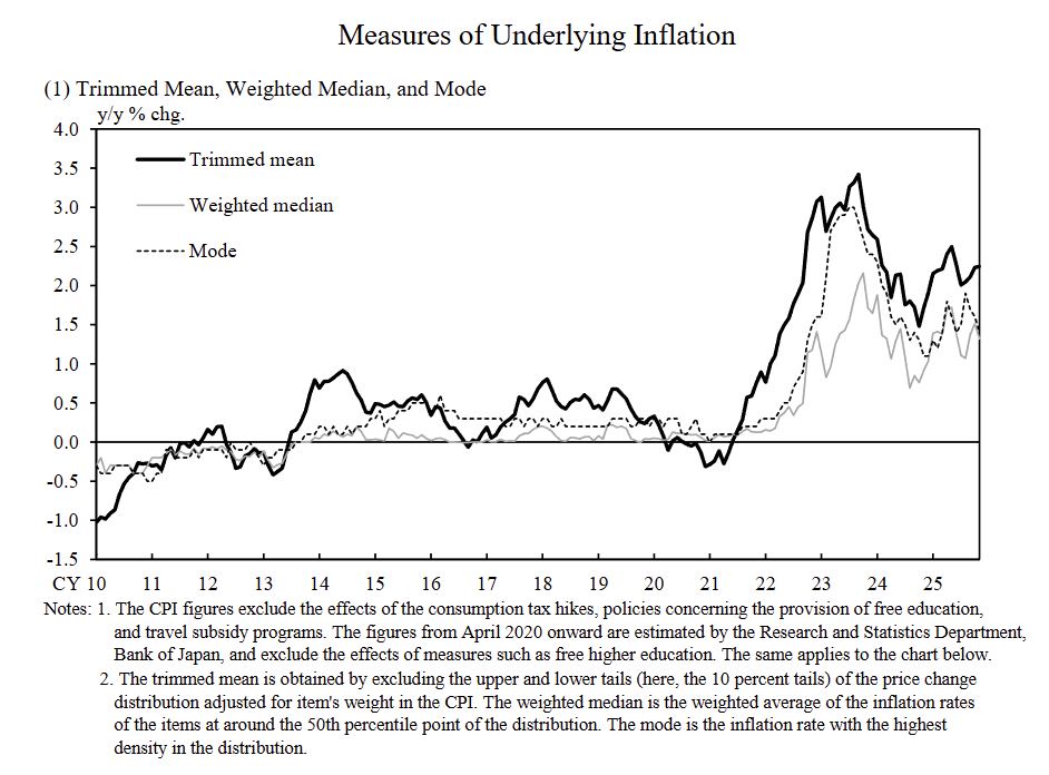 Japan’s measures of underlying inflation in December: