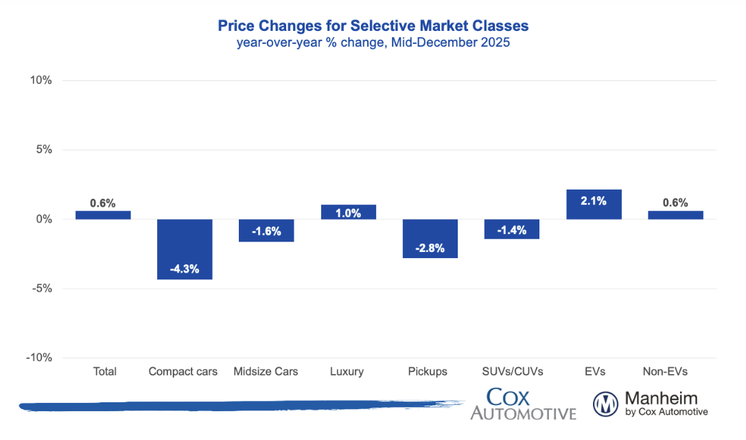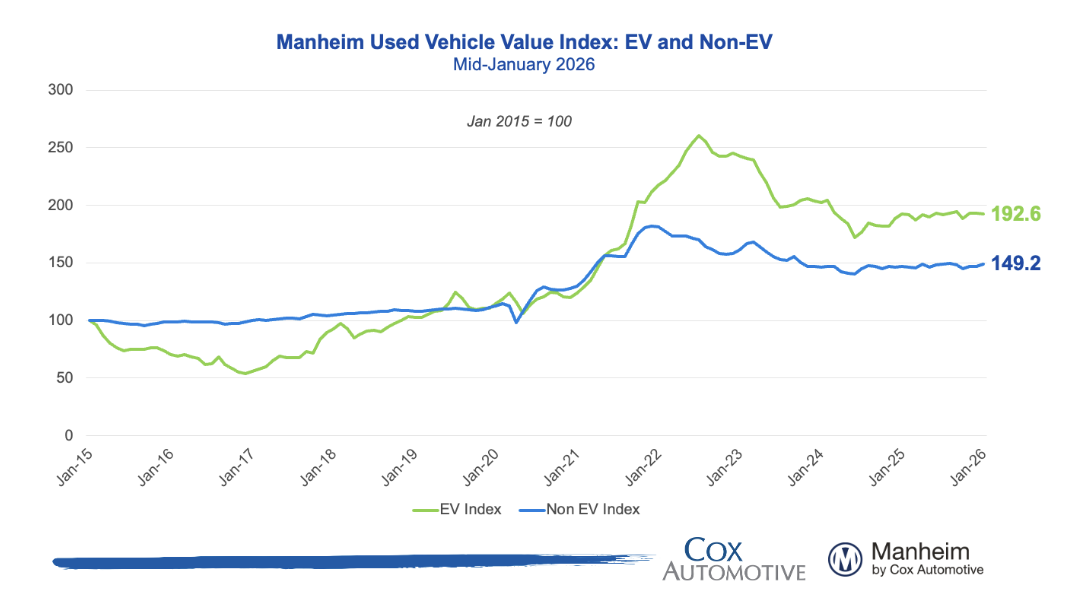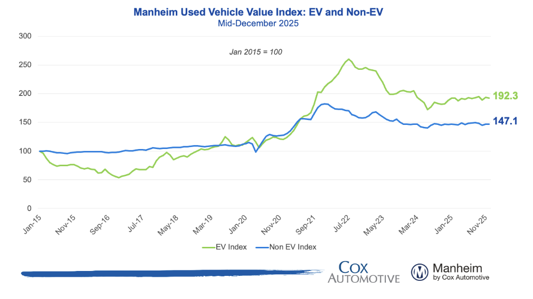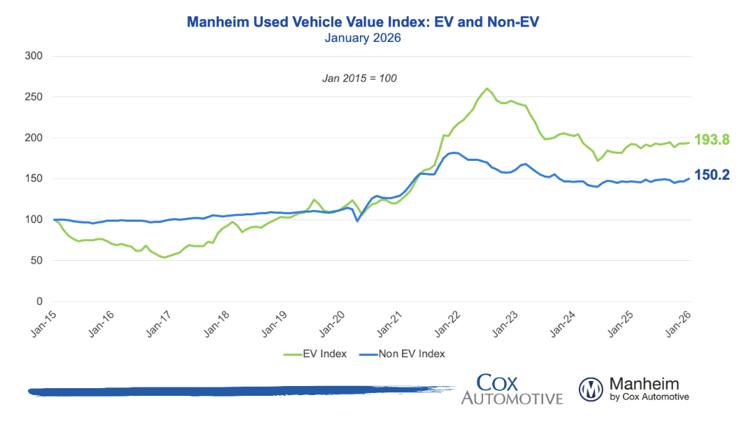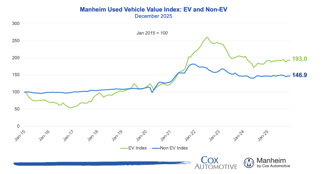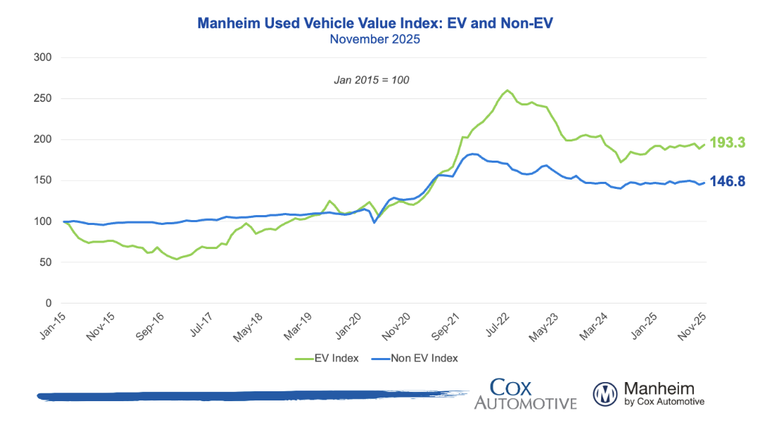 The Electric Vehicle Index rose +0.8% MoM and +1.8% YoY, while the Non-EV Index increased +0.9% MoM and +3.7% YoY, showing stronger price growth for non-EV vehicles despite moderation following the expiration of government EV incentives.