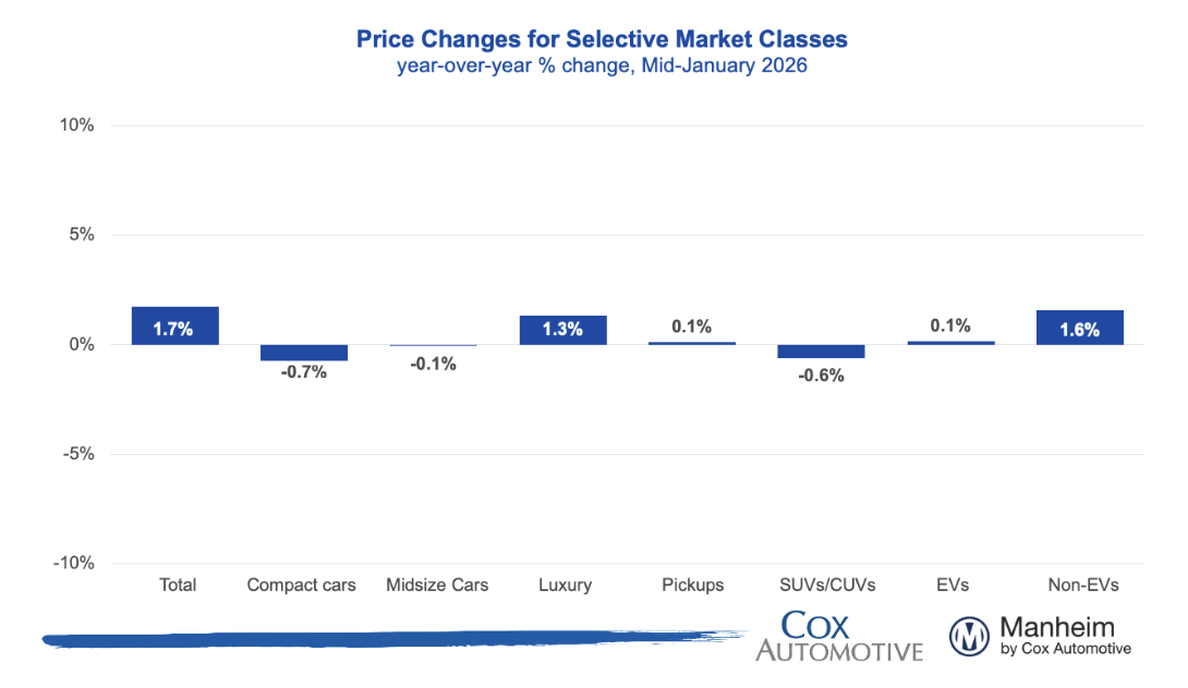Price gains were observed across all major vehicle segments YoY, with the luxury segment leading the market while compact cars and trucks posted the weakest relative increases.
