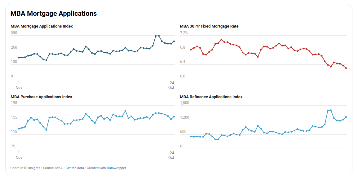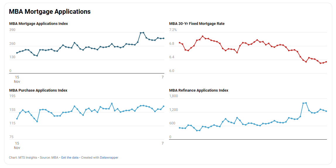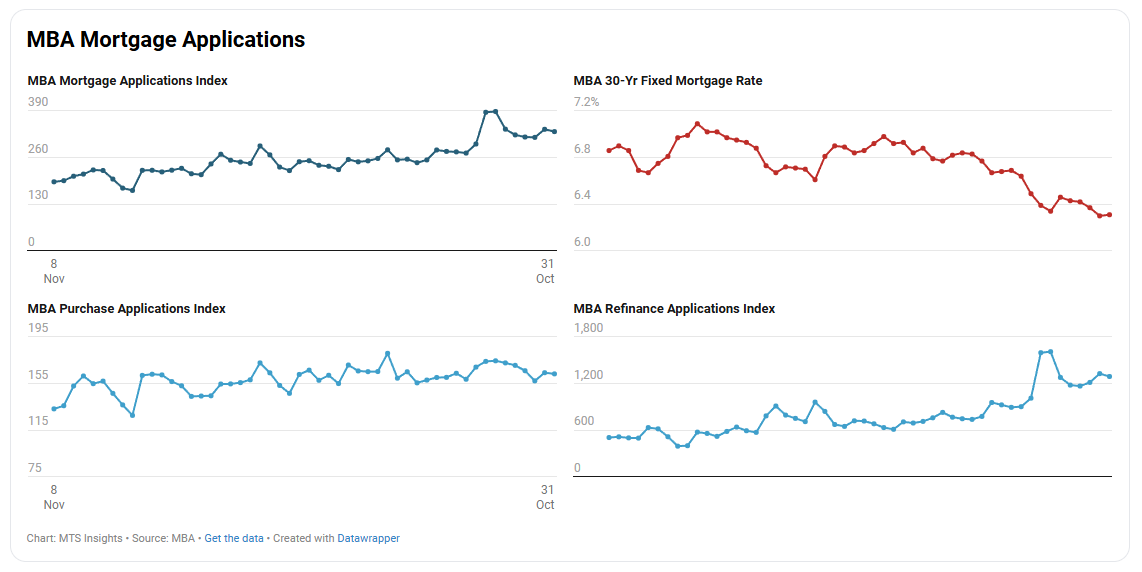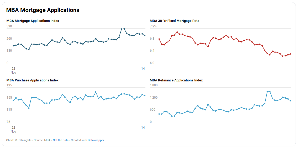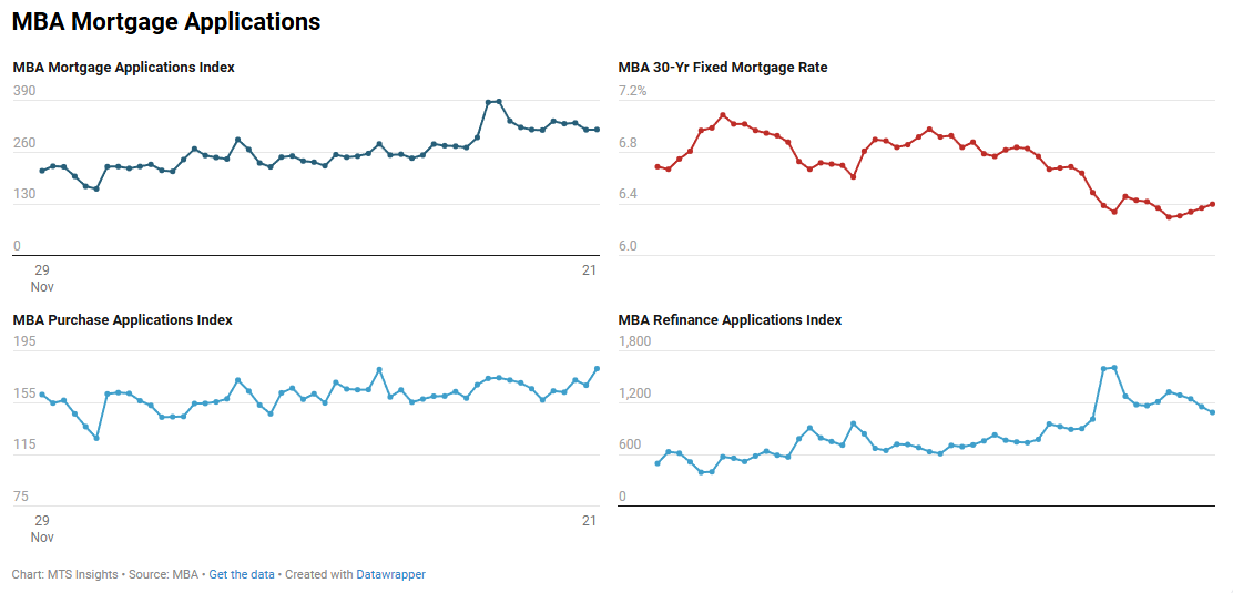 The MBA Mortgage Applications Composite Index edged up 0.2% WoW as mortgage rates increased to the highest since the week of October 10th.