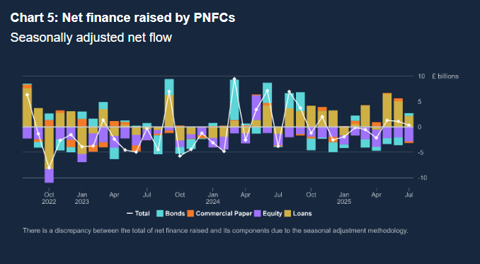 - Private non-financial corporations (PNFCs) raised, on net, £0.2 billion of finance in September, following net borrowing of £6.2 billion in the previous month.