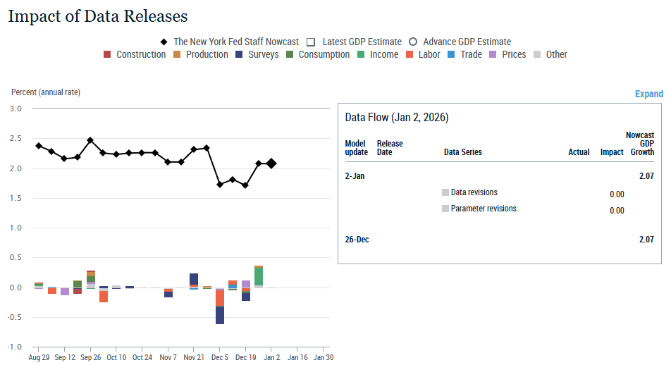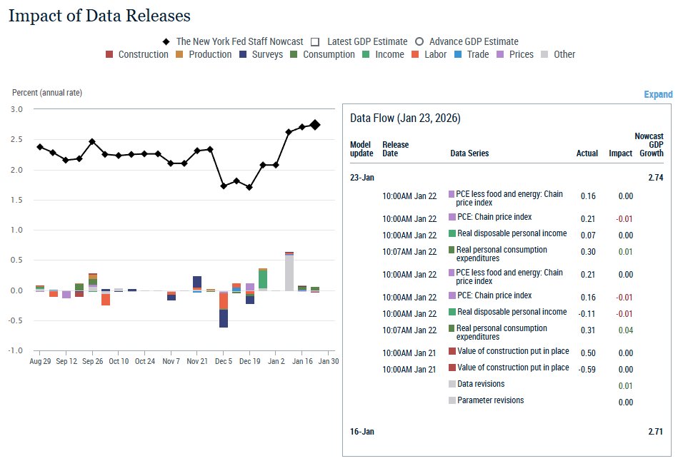 - For 2025 Q4, a positive surprise from personal consumption data was offset by negative surprises from disposable income and headline PCE data. The decrease for 2026 Q1 was driven by a negative surprise from headline PCE data.