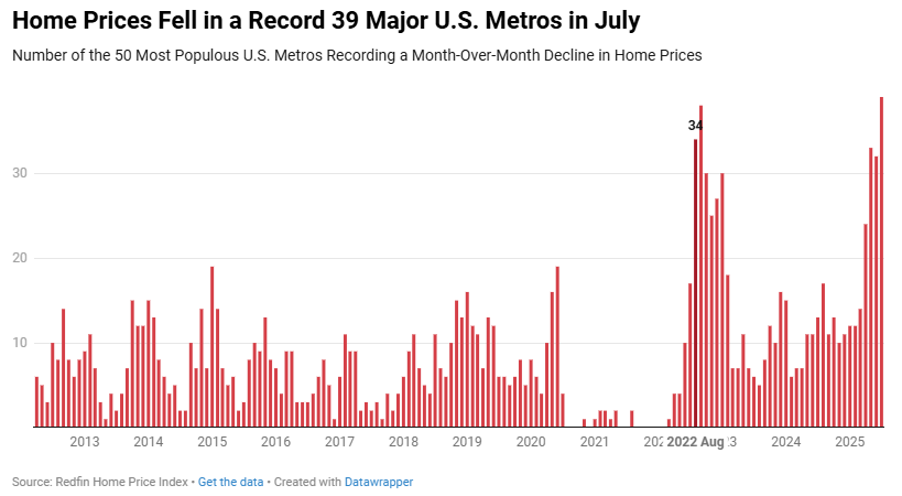 U.S. home prices rose 0.2% MoM in August 2025, while YoY growth slowed to 3.1%, the weakest pace in Redfin’s data since 2012.