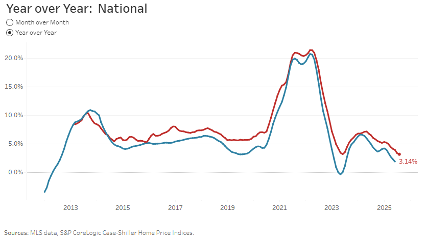 On a YoY basis, the 3.1% gain represents a significant slowdown from earlier in the year, reflecting softer demand and higher inventory.