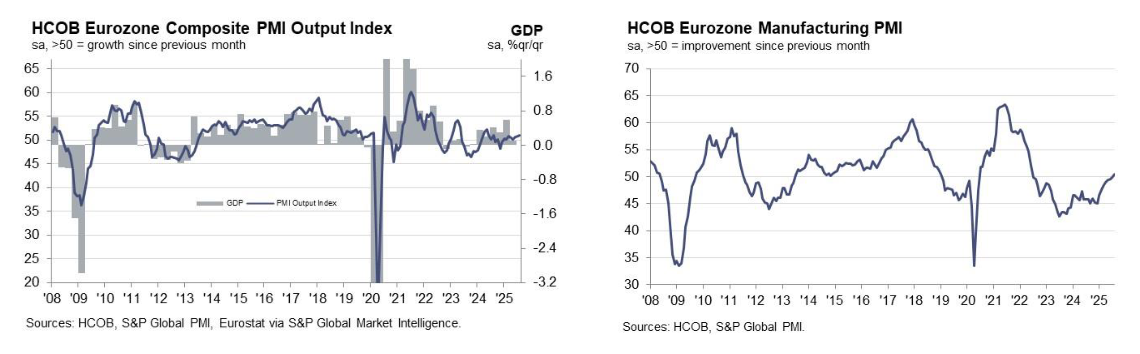The Eurozone Composite PMI Output Index rose to 51.1 in August (Jul: 50.9), a 15-month high, signaling the strongest private sector expansion since May 2024.