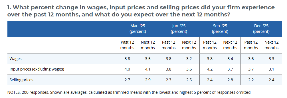 Wages and benefits increased to 13.5 (Dec: 10.6), pointing to slightly stronger labor cost pressures.