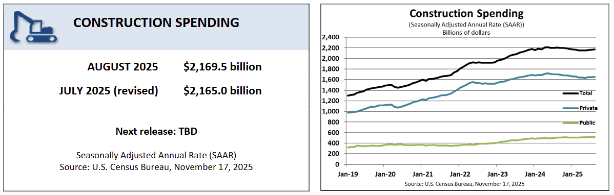 US construction spending grew 0.2% MoM in August but was down -1.6% YoY on an annual basis, breaking a streak of nine straight monthly declines.