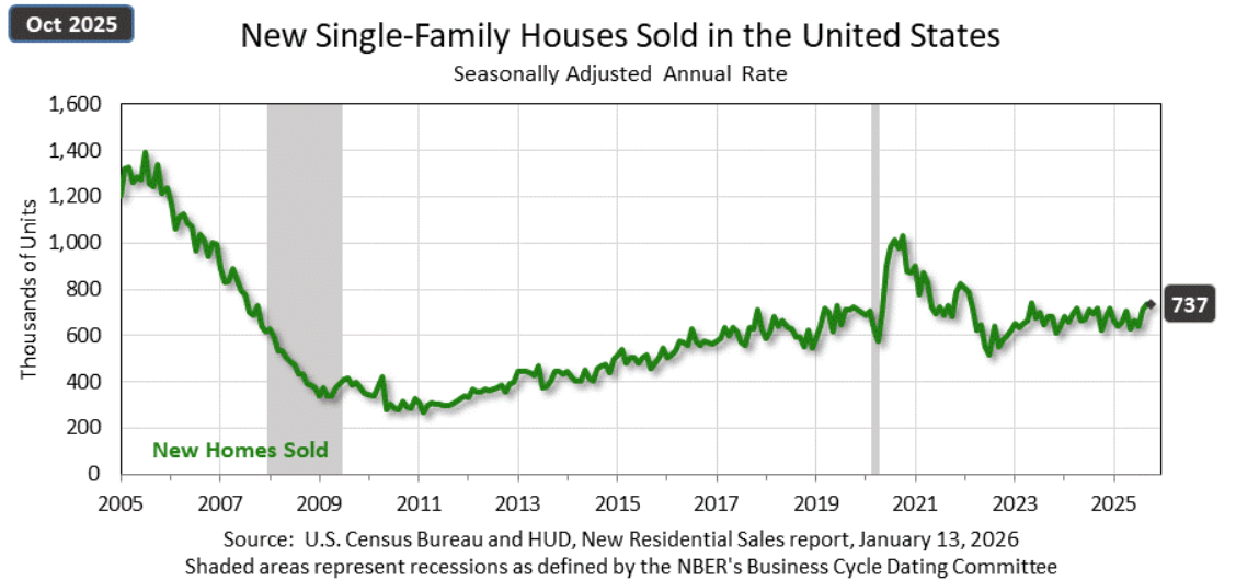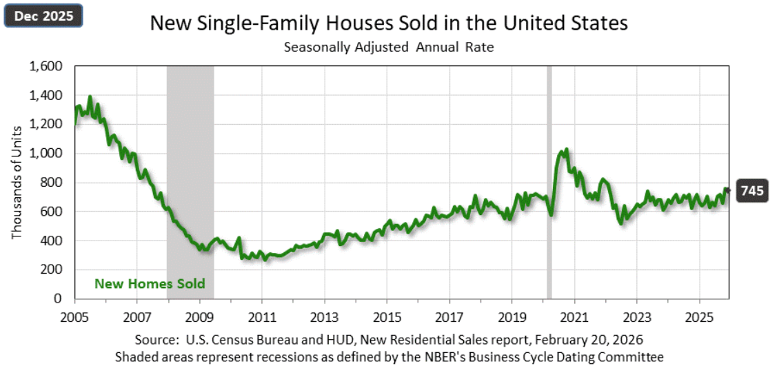 US new home sales increased from 656k in October to 758k in November and 745k in December (up 3.8% YoY).