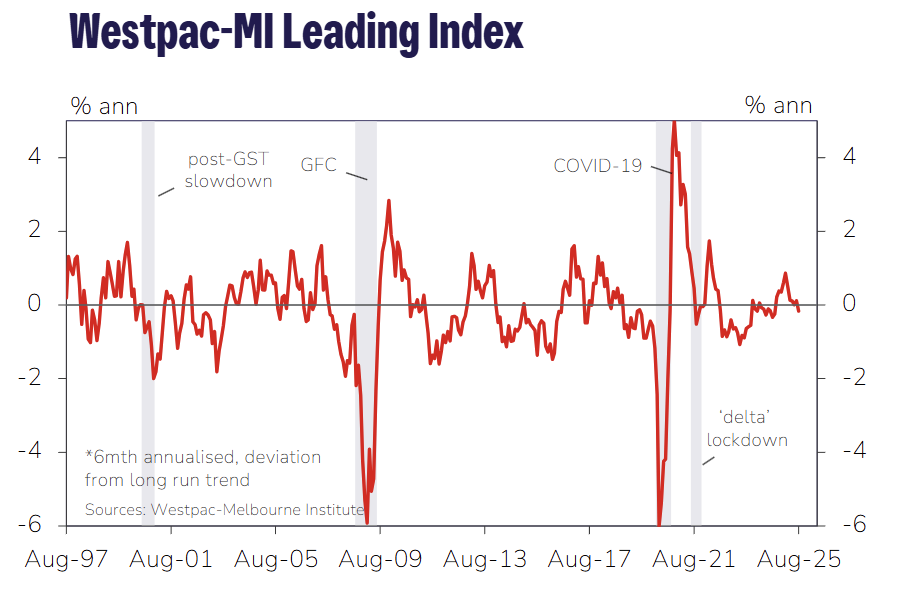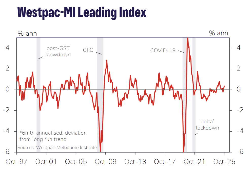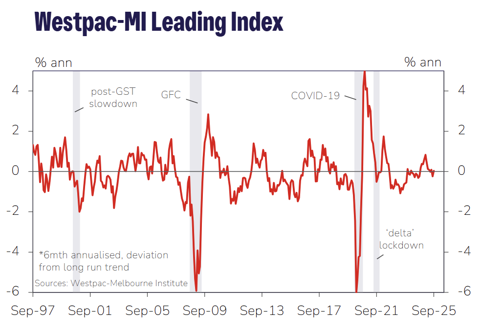 - Westpac expects GDP growth to hold around 2.5% in 2026, implying a near‑trend pace despite the softer leading signal.