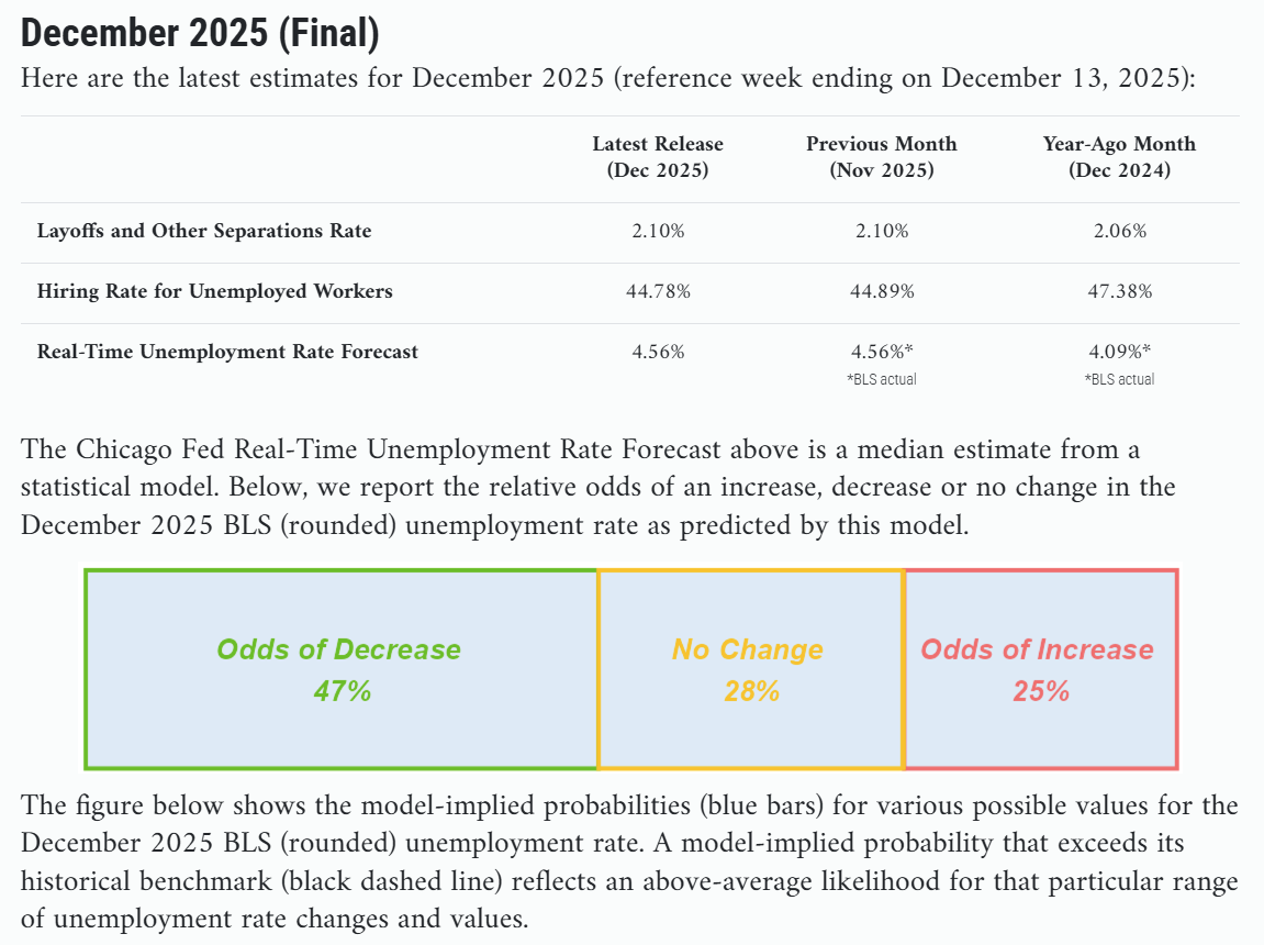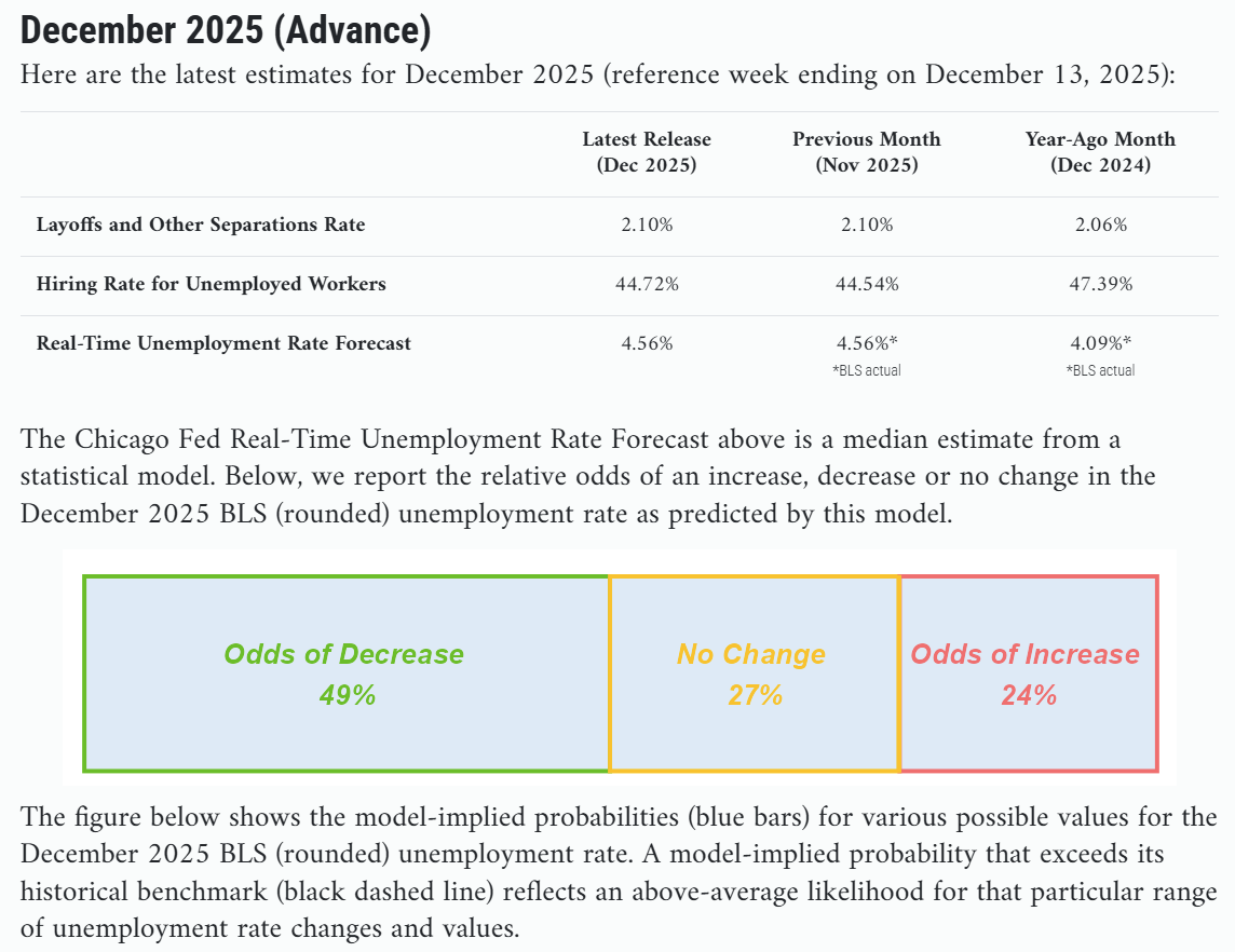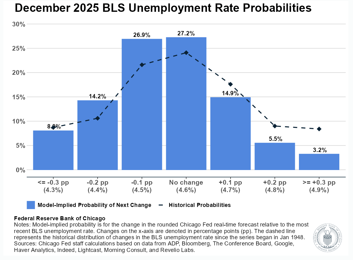 Probability of Unemployment Rate Change (Nov -> Dec) Advance Final Up (+0.1 ppts or more) 49.1% 47.1% No Change 27.2% 27.5% Down (-0.1 ppts or less) 23.6% 25.4%