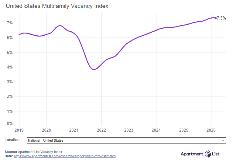 Multifamily vacancy rate at 7.3%, highest level since 2017